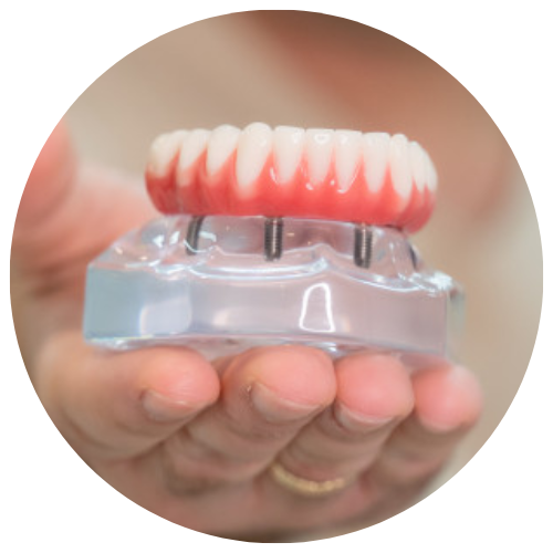 Esta é uma solução para perdas dentárias mais alargadas, ou totais. Hoje usamos técnicas mais inovadoras e vantajosas. Com apenas 4 ou 6 Implantes, reduzindo assim o custo e duração do procedimento. Tem como principal objetivo a reabilitação oral, devolvendo as funções básicas: comer, falar e sorrir sem preocupações. Uma prótese que parece tão natural quanto uma boca com dentes naturais.