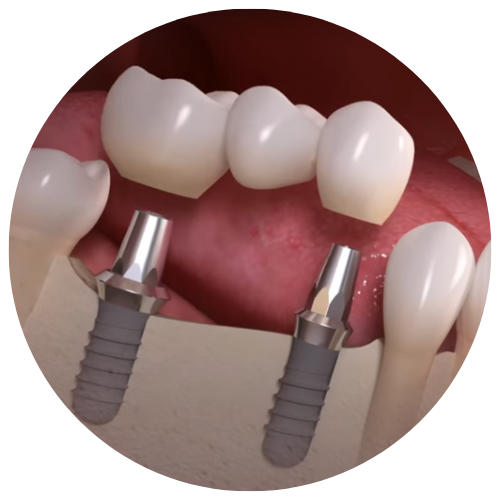 Esse tipo de implante é realizado em pacientes que perderam parte dos dentes, isto é, que não tiveram a arcada inteira removida. A peça se assemelha à conhecida “ponte”, tendo 2 pinos fixados para servirem de raiz para 3 dentes, ou 5 dentes sobre 3 implantes. A coroa é encaixada nas próteses, formando uma ponte entre os dois dentes.